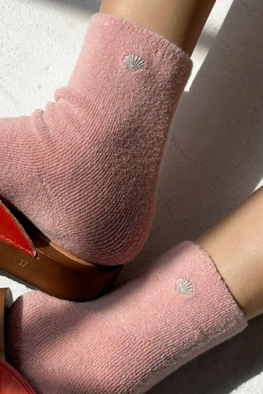 Like walking on clouds! These are hands down the comfiest and cutest socks to wear all year long. Made from a fluffy, terry cotton blend yarn that is breathable and unique. While the exterior is fluffy, the interior is smooth and airy. Pair them with your favorite clogs or slides and enjoy the extra cushion.